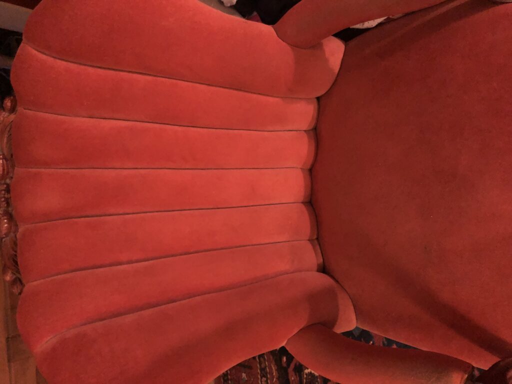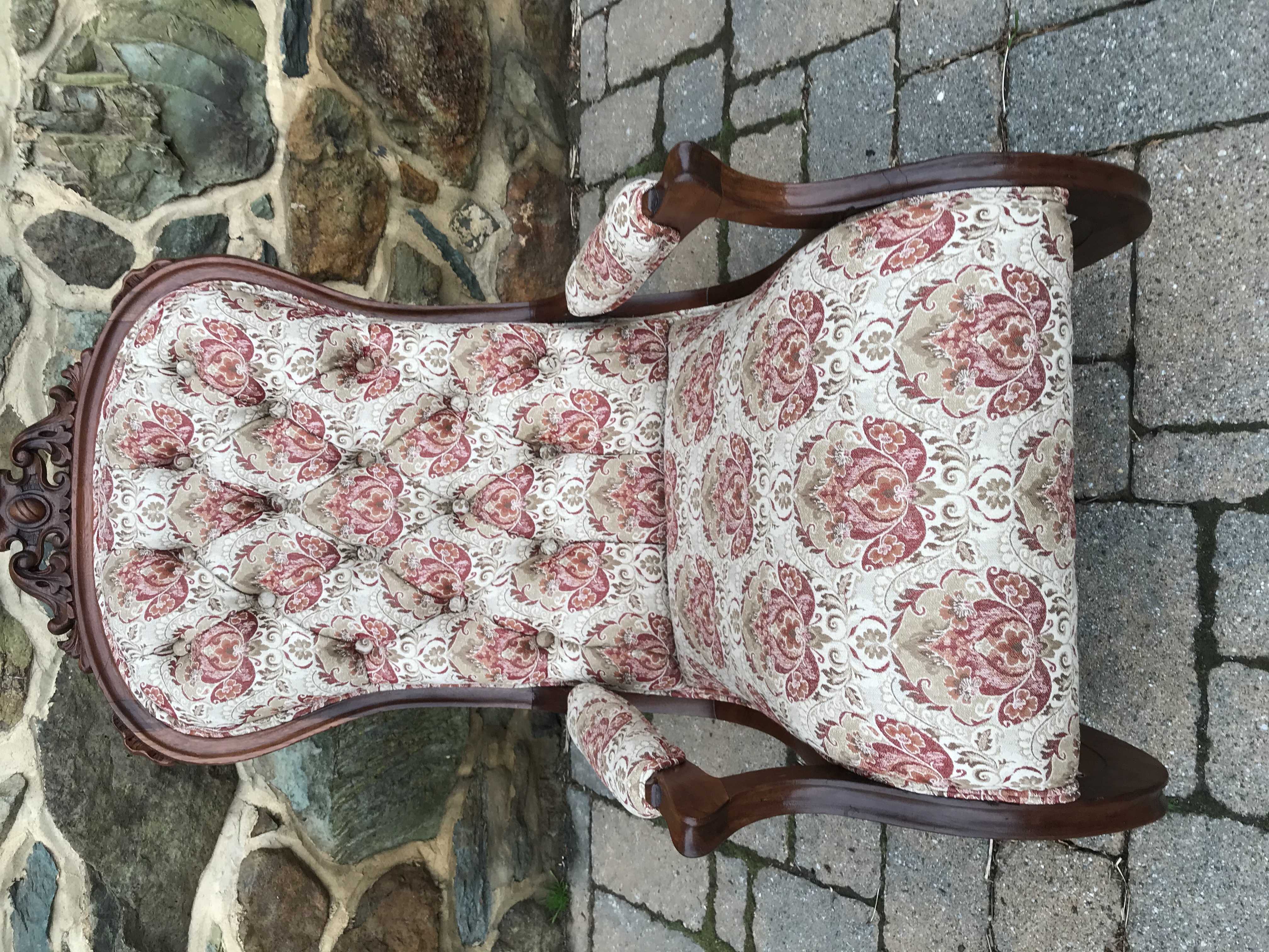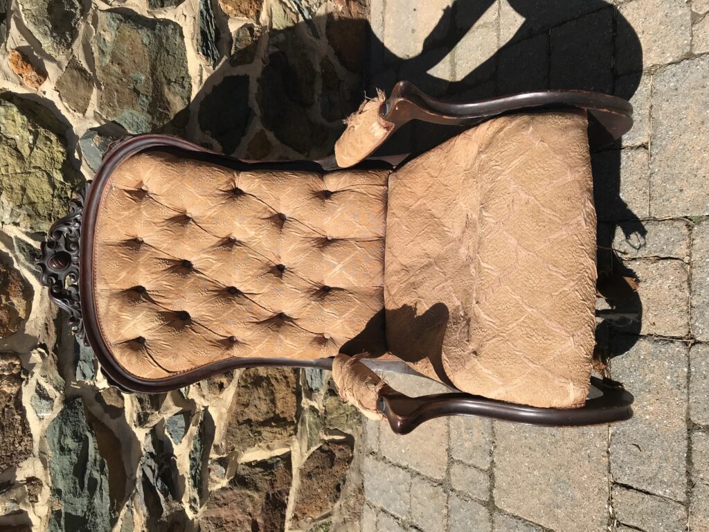 As we’ve been doing a lot of reupholstery work lately, we thought we’d share the photos below of a tufted chair. Tufting became popular in Victorian England when it was originally used to keep the stuffing of a chair, mattress, or sofa in place. Eventually tufting was seen as a sign of wealth. A benefit to tufting is longevity since when fabric is reinforced with tufts, it’s less likely to sag. There are five common types of tufting: diamond, button, biscuit or bun, blind, and channel. Diamond tufting, the most popular, is shown in the before and after photos below and involves securing the fabric into a pattern of diamond shapes; this type of tufting is considered the most comfortable because of the extra stuffing pushed into the tufts.