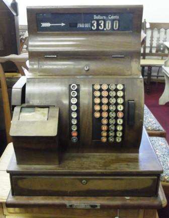Our featured recent acquisition this month is the antique cash register shown above. The cash register was invented in 1879 by Dayton, Ohio saloon owner James Ritty to keep employees from taking his profits. The machine he patented used metal taps with denominations pressed into them to indicate the amount of the sale. There was even a bell to “ring up” sales and an adding function that totaled the values of the key presses during a day. John Patterson, the founder of National Cash Register or NCR after previously owning a general store, purchased the rights to this Ritty’s invention for $6500 in 1884. Between 1888 and 1915, cash registers spread to nearly all retail establishments. See additional photos of this one at http://irongateantiques.com/recent-acquisitions/.