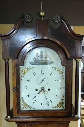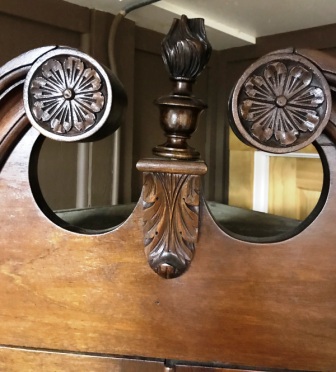 Did you make it out for the Bluemont Fair this year? Even if you visited the store that recently, we have several more recent acquisitions that may be of interest.  The first is a gorgeous mahogany Empire corner cupboard.  It is 88 inches high, including the finials, 44 inches wide and 30 inches deep. The cupboard has a broken arch pediment and 3 flame finials. There are 2 sections. The upper section has 2 shelves with plate grooves and the bottom cupboard has a shelf.  The wood is mahogany and in excellent condition  The second is an early 1800’s quarter sawn oak  English tall case clock, which is 7 feet 3 inches high.  It runs and strikes on the hour and half hour. The clockworks were recently overhauled. Photos of both are below, but additional photos can be seen at Recent Acquisitions