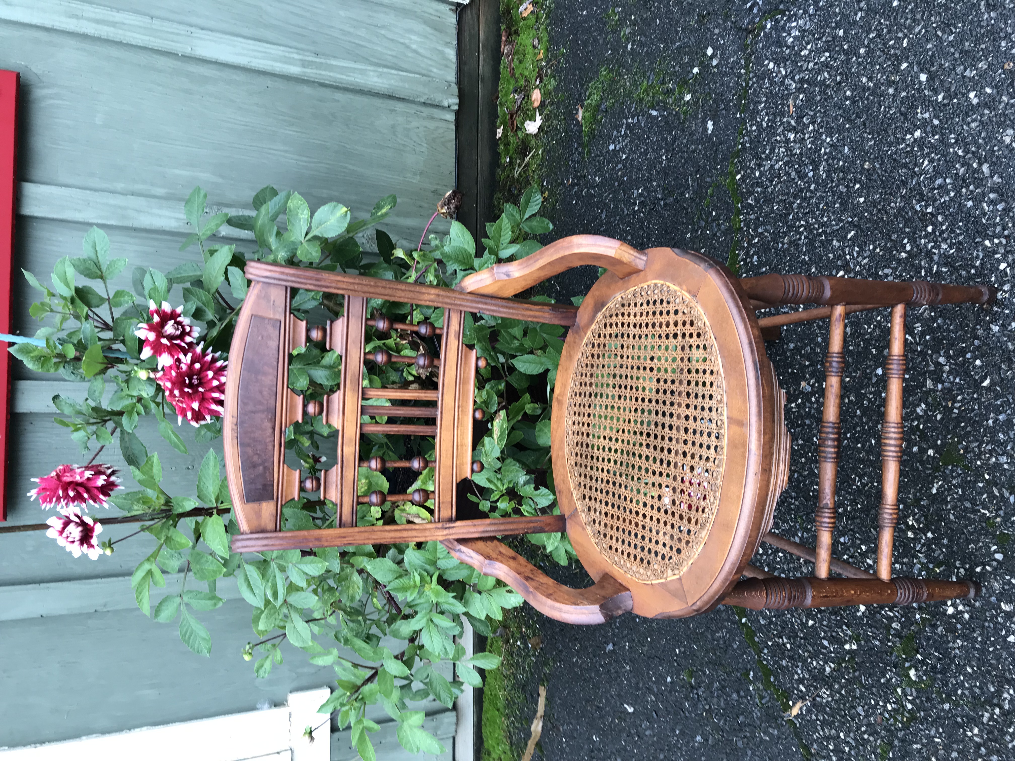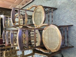 If you made it to the store recently, perhaps during the Bluemont Fair, you may have seen the set of six chairs with caned seats shown below. These have all recently been re-caned, so if properly maintained, should last 20-60 years. In case you’re wondering how to care for cane seats, it’s important to remember that cane is a natural material that should be protected from things like direct sunlight and heater ducts that could cause it to dry out and become brittle. To keep the can supple and fresh, brush lemon oil (not lemon juice) on the underside of the seat once or twice per year. (As a side benefit, the scent of lemon oil may reduce stress and anxiety and has been shown to reduce morning sickness in pregnant women.)